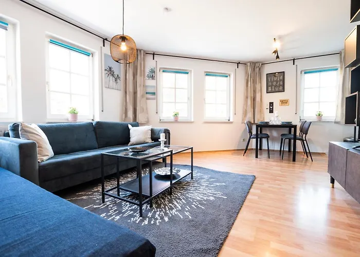 Blick Uber Dresden Apartment comprises a seating area featuring a sofa set and a writing desk, and modern comforts like a flat-screen TV with satellite channels. Beds fitted with down-feather pillows are at guests' disposal. A bathroom has a separate toilet and a shower, as well as dryers and towels.